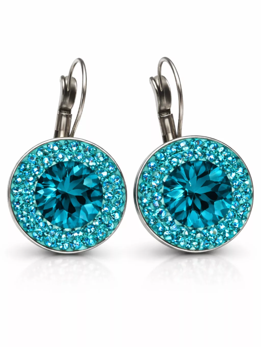 Gyönyörű osztrák kristályok felhasználásával készült látványos fülbevaló, bőrbarát, nemesacél alapon látványos csillogással. Két sorban apró kövekkel, középen egy nagy kristállyal.