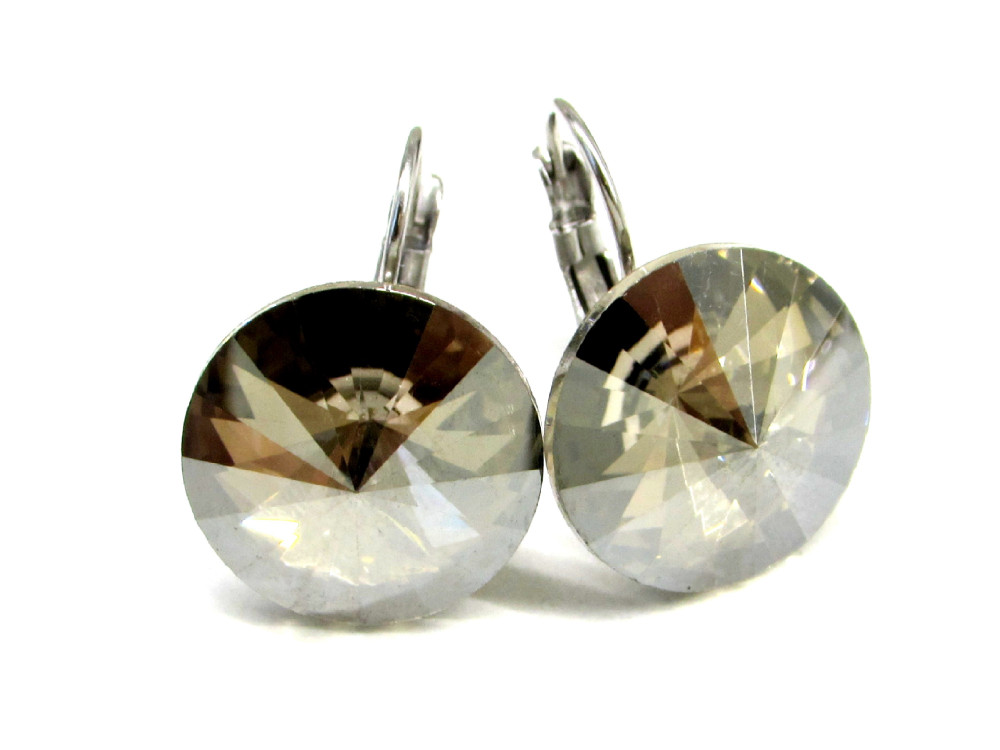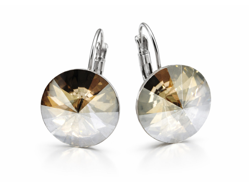 Gyönyörű satin színű eredeti kristály felhasználásával készült látványos, francia kapcsos fülbevaló 16 mm-es kristállyal, bőrbarát, nemesacél alapon ezüstös csillogással. Kitűnő ajándék ünnepekre, úgy mint születésnap, névnap, ballagás.