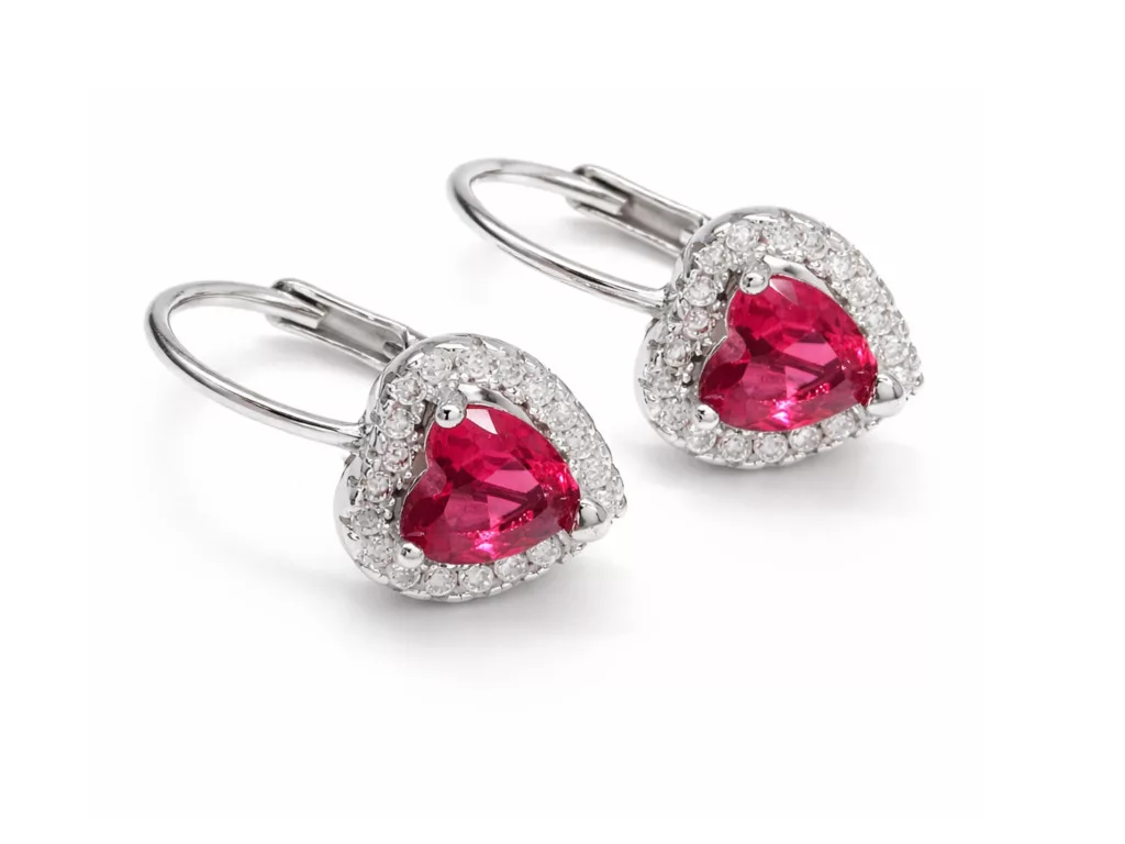 KRISTÁLYOS SZÍVECSKE ezüst fülbevaló - 15 mm - rózsaszín (4 éves kortól 12 éves korig)