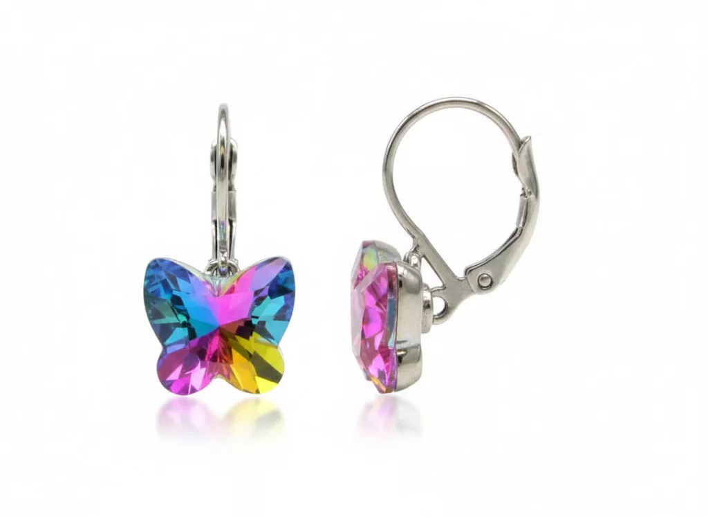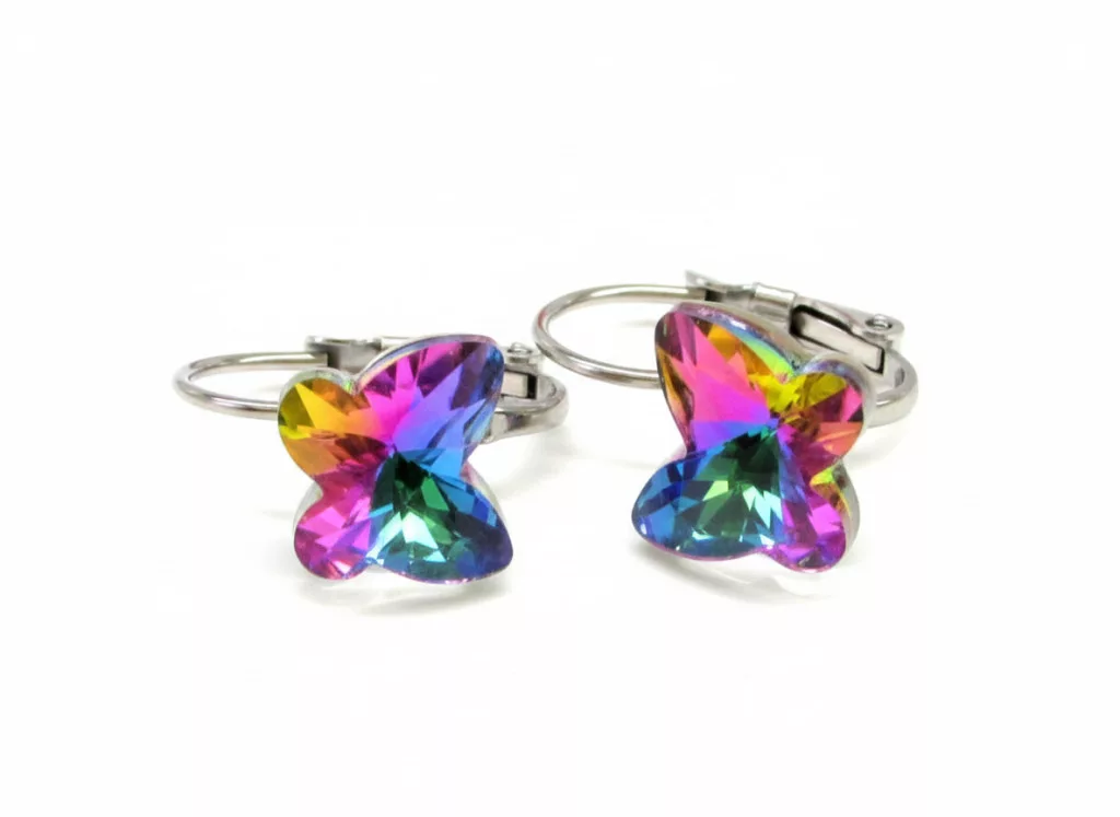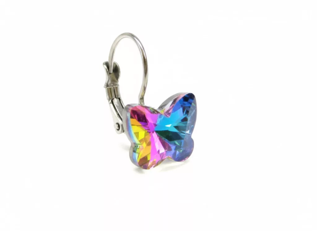 PILLANGÓ kapcsos fülbevaló - szivárvány (5 éves kortól tinédzser korig)