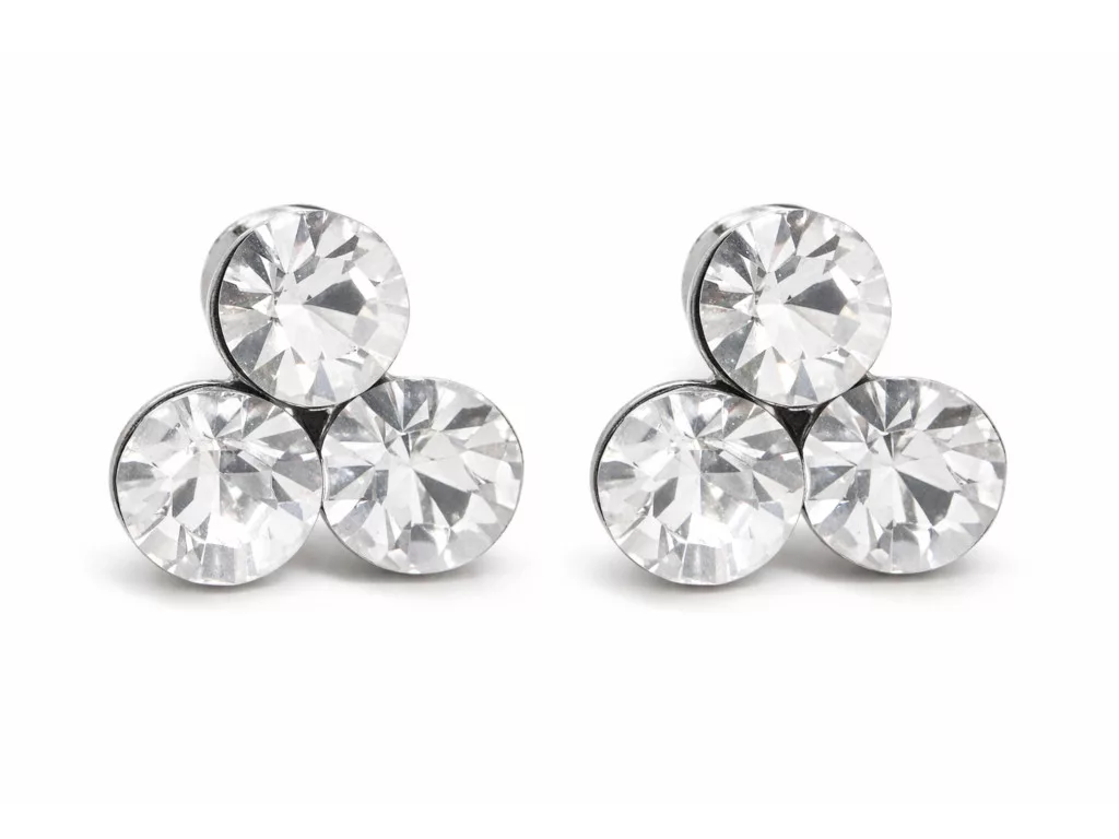 Tripla bedugós fülbevaló 10 mm: bőrbarát nemesacél alap, 3x5 mm csiszolt kristály. Különleges színek, elegáns csillogás, kényelmes mindennapi viselet.